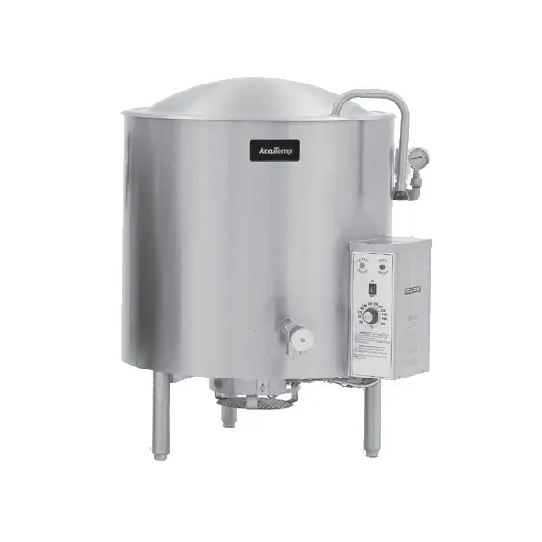 Elevate Your Culinary Toolbox with the AccuTemp ALLGB-60F Gas Stationary Kettle. Designed for commercial restaurant use, this kettle is a game-changer in the kitchen. With a generous 60-gallon capacity and a full jacket, it allows for efficient and even heat distribution, ensuring perfectly cooked meals every time. The 304 stainless steel liner guarantees durability and easy cleaning, while the electronic ignition provides quick and hassle-free start-ups. The self-contained, insulated design retains heat, reducing energy consumption and keeping your dishes warm for longer periods. The deep-drawn stainless steel construction adds strength and longevity to the kettle, making it a reliable investment for your restaurant. Equipped with a 2 compression draw-off valve, this kettle allows for easy and precise pouring, minimizing spills and waste. With a leg-mounted design and UL and NSF certifications, the AccuTemp ALLGB-60F Gas Stationary Kettle is a must-have for any professional kitchen.