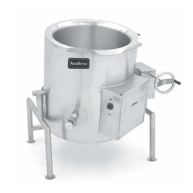 Enhance Your Kitchen Performance with the AccuTemp ALTWE-40 Electric Tilting Kettle. Designed for commercial restaurant use, this kettle is a game-changer in the kitchen. With a generous 40-gallon capacity and a 2/3 jacket, it allows for efficient and precise cooking of large quantities of soups, stews, and sauces. The 304 stainless steel liner ensures durability and easy cleaning, while the field replaceable heating elements guarantee uninterrupted operation. The self-contained, u-frame mounted design makes installation a breeze, and the deep-drawn stainless steel construction ensures excellent heat distribution. With a 30 PSI rating, this kettle can handle even the most demanding cooking tasks. UL and NSF certified, it meets the highest safety and sanitation standards. Upgrade your kitchen with the AccuTemp ALTWE-40 Electric Tilting Kettle and experience enhanced efficiency and productivity in your commercial restaurant.