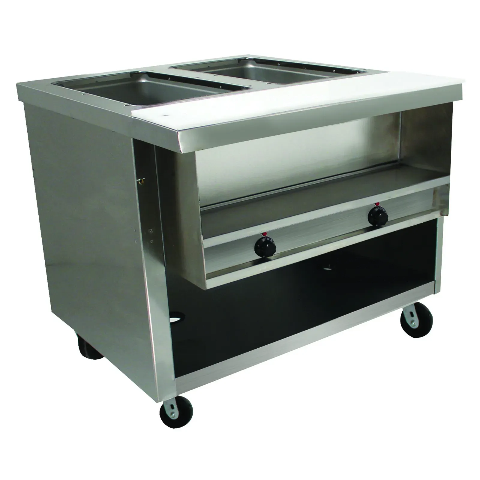 The Advance Tabco Heavy Duty Sealed Well Hot Food Table features two 12" x 20" insulated wells, each capable of accommodating pan inserts up to 6-1/4" deep. This ensures your hot foods stay at the perfect serving temperature. Each well is equipped with individual thermostatic controls, allowing for precise temperature management to suit a variety of dishes.