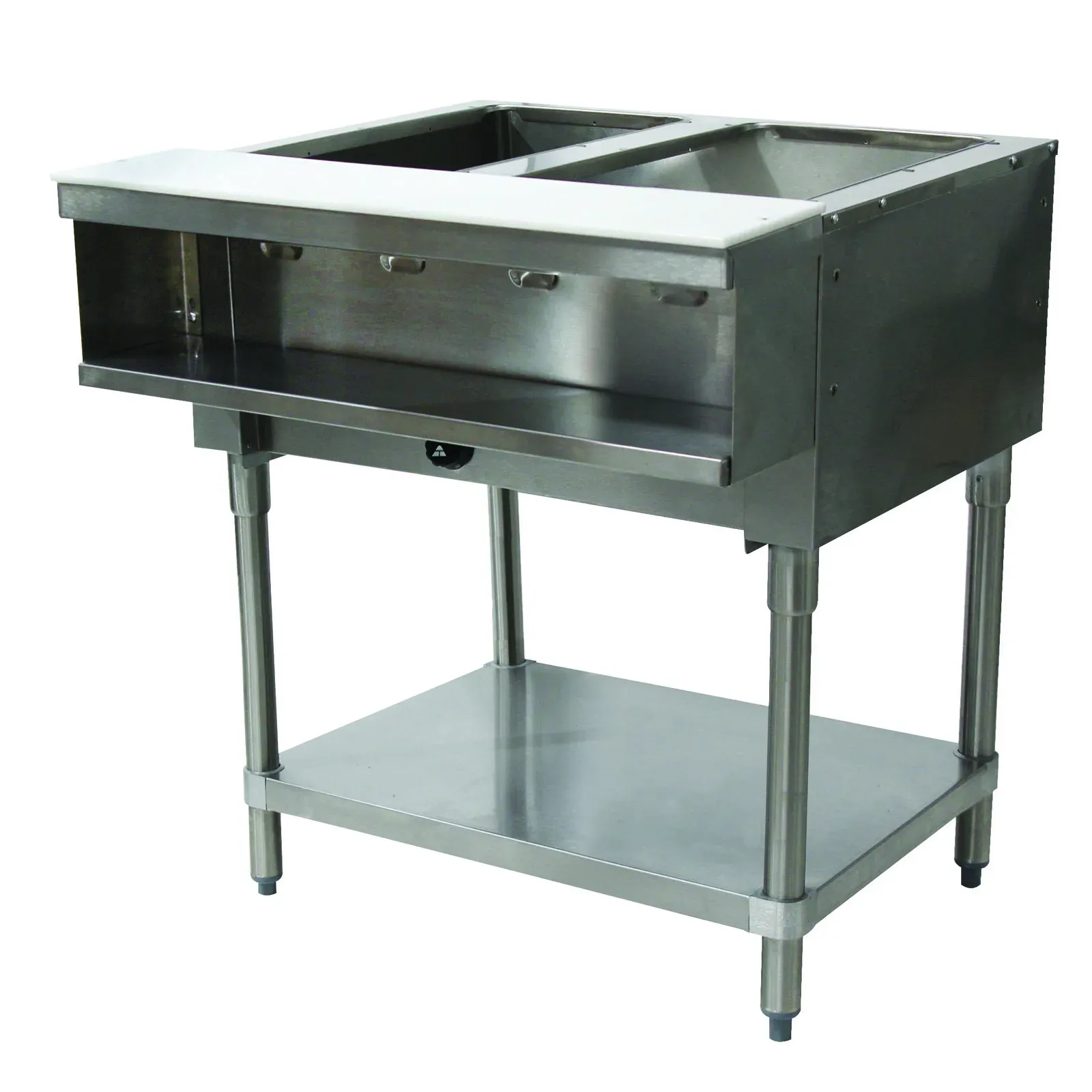 Take your kitchen to the next level with the Advance Tabco Water Bath Hot Food Table. Designed specifically for restaurant settings, this high-performance unit ensures your hot food items remain at the perfect serving temperature. The Water Bath Hot Food Table features two 12" x 20" well openings, accommodating pan inserts up to 7-3/4" deep, making it ideal for a variety of dishes.