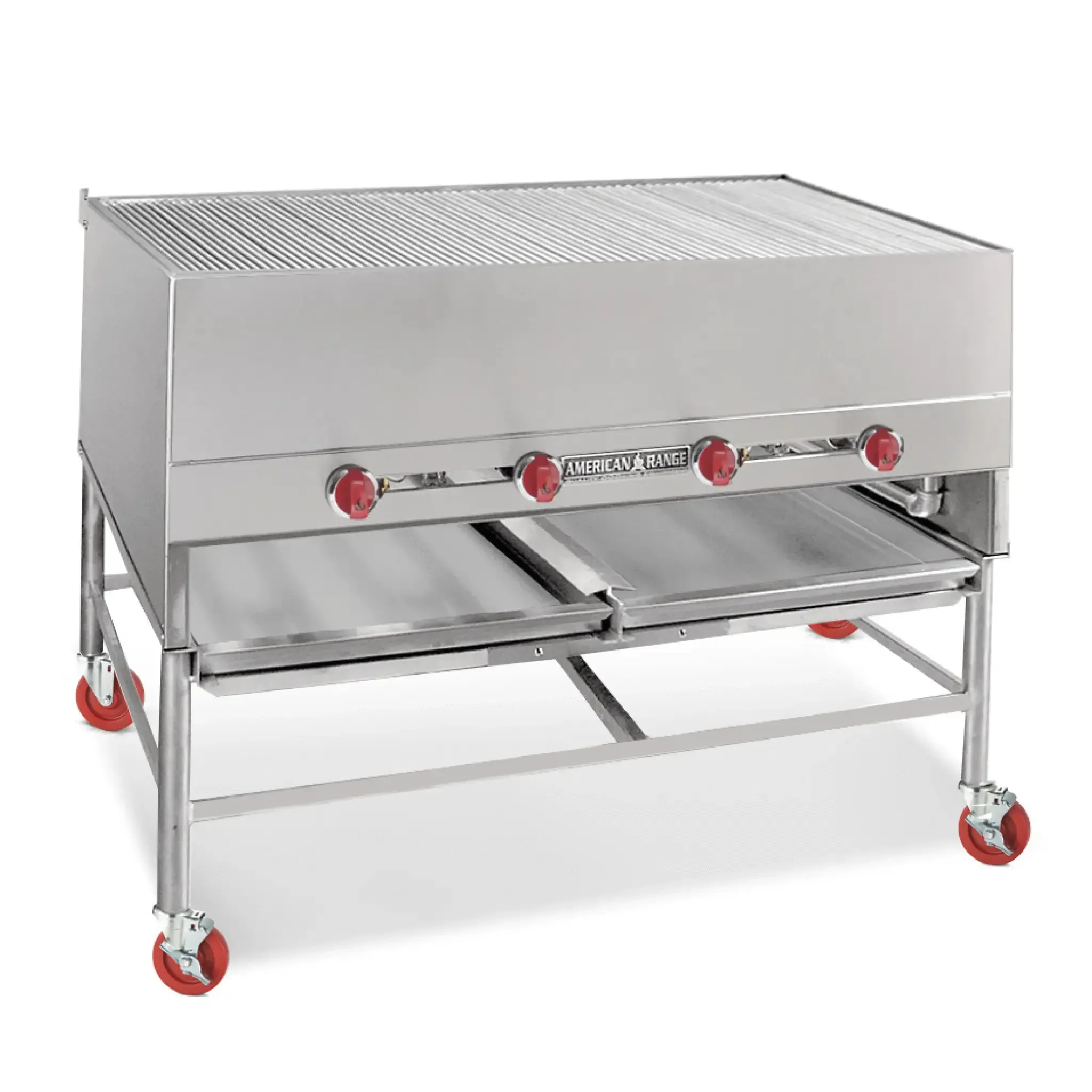 Cook with passion and embrace culinary excellence with the American Range AHS-6036 Charbroiler. This gas-powered, floor model charbroiler is designed specifically for commercial restaurant use, making it the perfect addition to any professional kitchen. With a generous 60" width and five burners, this charbroiler provides ample cooking space to handle high-volume demands. The round rod non-stick top grates ensure even heat distribution and prevent food from sticking, while the open bottom grate design allows for easy cleaning. Made in the USA with a durable stainless steel exterior, this charbroiler is built to withstand the rigors of a busy kitchen. With a powerful 59.0kW and 200,000 BTU, this charbroiler delivers exceptional cooking performance. Trust American Range, a reputable vendor in the industry, and elevate your restaurant's grilling capabilities with the AHS-6036 Charbroiler.
