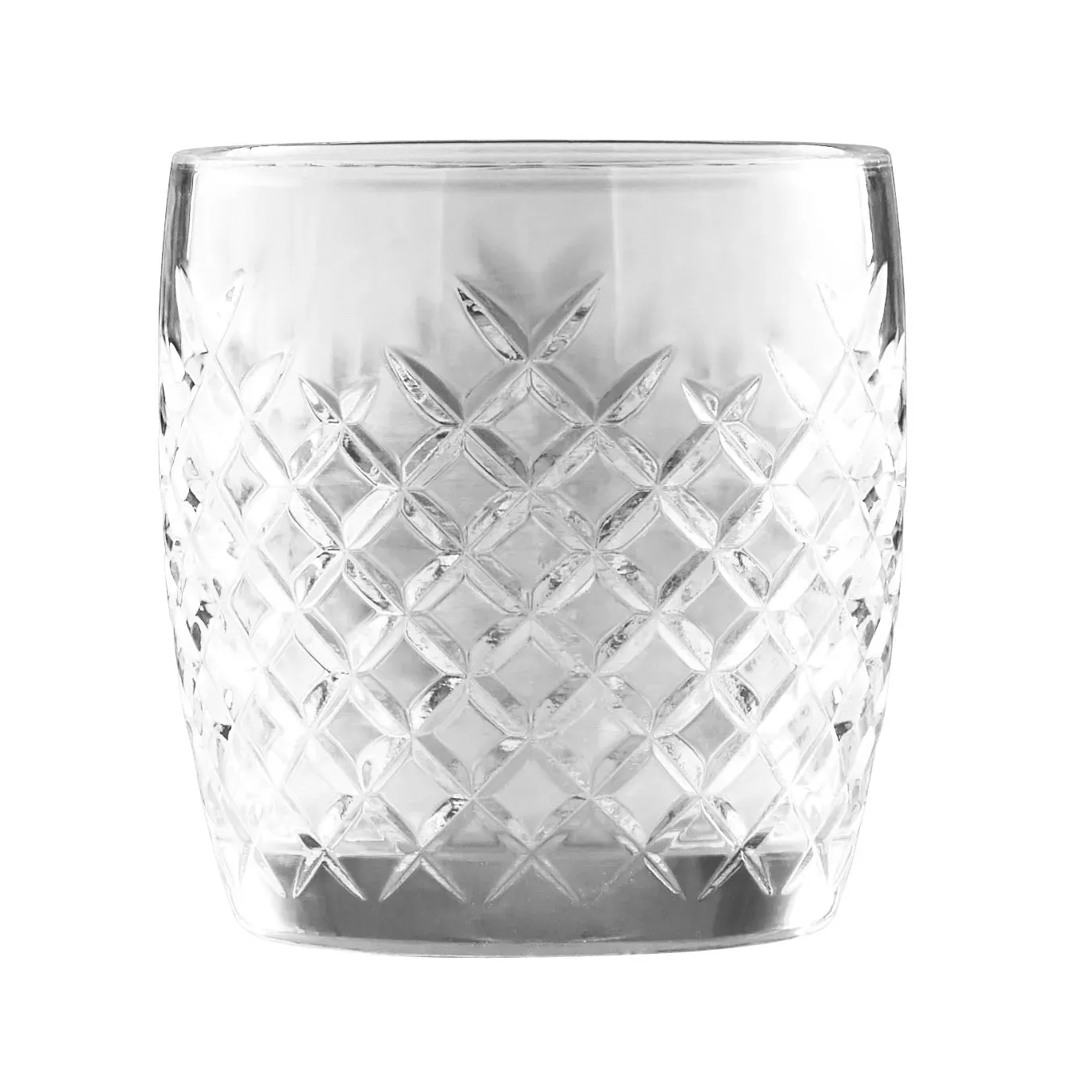 Enhance your restaurant's allure with the Anchor Hocking 13398FS Glass Old Fashioned/Rocks. This classic and versatile glassware is a must-have for any commercial restaurant. With a capacity of 10 oz., it is perfect for serving a variety of beverages, from cocktails to whiskey on the rocks. The clear glass design allows your customers to appreciate the color and presentation of their drinks. The cross-hatch pattern adds a touch of elegance and sophistication to your tabletops. Made of high-quality glass, this rocks glass is durable and long-lasting, ensuring it can withstand the demands of a busy restaurant environment. You will have an ample supply of glasses for your establishment. Elevate your drink service and impress your customers with the Anchor Hocking 13398FS Glass Old Fashioned/Rocks.