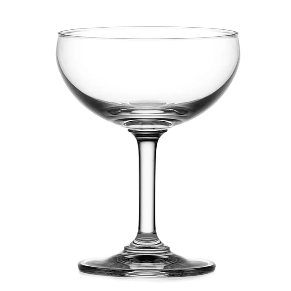 Champagne glasses need to be made as carefully as their renowned contents. The flat model, rather than the flute, is an older design popular for centuries. Now, for its flavor enhancing qualities, it' s coming back. The wide bowl maximizes aeration while the wide foot provides a stable anchor. At 6.75 ounces, this classic glass is perfect for enjoying the world' s finest Champagnes, Proseccos, and sparkling wines.