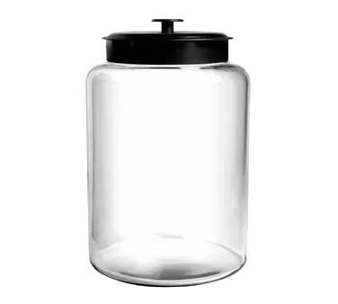 Enhance your restaurant's allure with the Anchor Hocking 88908AHG17 Storage Jar / Ingredient Canister. This glass canister is designed to meet the needs of commercial restaurants, offering both functionality and style. With a capacity of 2-1/2 gallons, it provides ample space to store and display your ingredients, ensuring easy access and organization. The clear glass construction allows for quick identification of contents, while the black metal cover adds a touch of elegance. The Montana design adds a modern and sophisticated look to your restaurant's decor. Manufactured by Anchor Hocking, a trusted name in kitchenware, this canister is built to last and withstand the demands of a busy restaurant environment. Whether you're storing dry goods, spices, or other ingredients, this storage jar is a must-have for any commercial kitchen. Elevate your restaurant's storage solutions with the Anchor Hocking 88908AHG17 Storage Jar / Ingredient Canister.