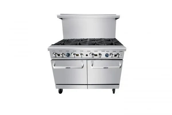 Master the art of flavor with the Atosa USA AGR-8B 48" Gas Range (8 Burner). This commercial-grade range is designed to meet the demands of a busy restaurant kitchen. With eight 32,000 BTU open burners, you'll have plenty of cooking power to handle multiple dishes at once. The removable cast iron top grates make cleaning a breeze, while the two 20" ovens provide ample space for baking and roasting. Each oven comes with two adjustable chrome racks, allowing you to customize the cooking space to fit your needs. The stainless steel construction of the range ensures durability and easy maintenance, while the included drip tray helps keep your workspace clean. With a total of 304,000 BTUs, this range delivers the performance and reliability that every commercial kitchen needs. Upgrade your kitchen with the Atosa USA AGR-8B 48" Gas Range and elevate your culinary creations to new heights.