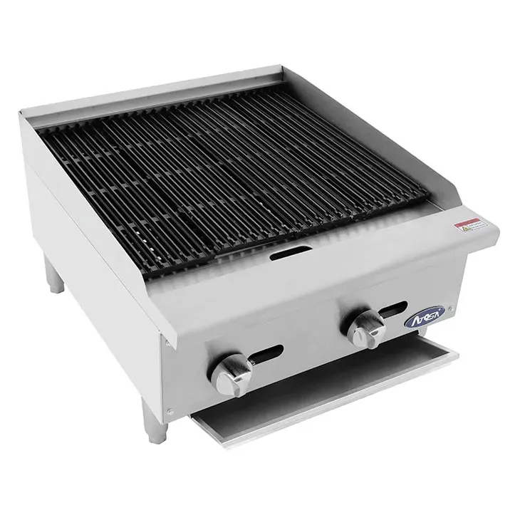 Fuel your passion for cooking with the Atosa USA, ATCB-24 Gas Countertop Charbroiler. This high-quality charbroiler is designed to meet the demands of a commercial restaurant kitchen. With its compact size and powerful performance, it is perfect for grilling a variety of dishes to perfection. The charbroiler features two stainless steel burners and stainless steel radiant plates, ensuring even heat distribution and consistent cooking results. The cast iron grill grates and lava rock grates add a delicious smoky flavor to your food. The independent manual controls allow you to adjust the heat levels for different cooking requirements. The adjustable multi-level top grates provide versatility and allow you to cook different types of food simultaneously. Made with a durable stainless steel structure and adjustable legs, this charbroiler is built to last in a busy restaurant environment. With a BTU rating of 70,000, this charbroiler delivers powerful performance and is ETL-Sanitation certified. Upgrade your restaurant kitchen with the Atosa USA, ATCB-24 Gas Countertop Charbroiler and elevate your grilling game.