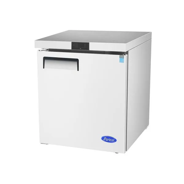 Achieve kitchen supremacy with the Atosa USA, MGF8401GRL, 27" Undercounter Refrigerator. This undercounter refrigerator from Atosa USA is designed to meet the demands of a commercial restaurant setting. With its compact size of 27-9/16"W x 30"D x 34-1/8"H, it fits perfectly under countertops, saving valuable space in your kitchen. The rear-mounted self-contained refrigeration system ensures efficient cooling, while the digital temperature control allows you to easily adjust the temperature between 33° to 40°F to keep your ingredients fresh. The stainless steel interior and exterior not only provide durability but also make cleaning a breeze. The left-hinged solid door and adjustable shelf offer convenience and flexibility in organizing your items. With automatic evaporation and air defrost, maintenance is hassle-free. This ENERGY STAR® certified refrigerator also features 2" casters for easy mobility. Upgrade your kitchen with the Atosa USA, MGF8401GRL, 27" Undercounter Refrigerator and experience superior performance and reliability.