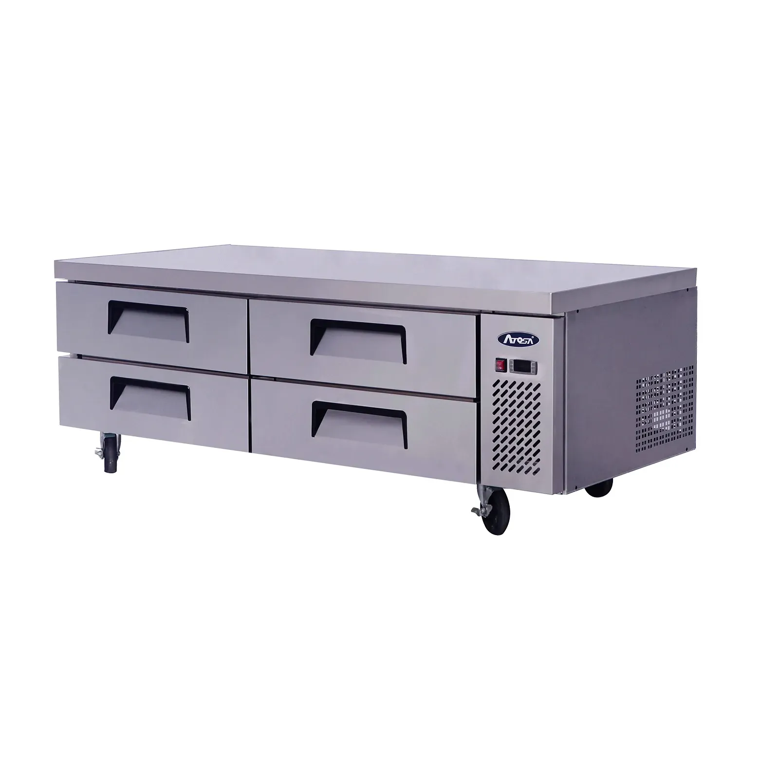 Equip your kitchen for success with the Atosa USA MGF8453GR Equipment Stand, Refrigerated Base. This two-section chef base is designed to meet the demands of a busy commercial restaurant. With its extended top, it provides ample space for food preparation, while the four self-closing drawers with recessed handles offer convenient storage for ingredients and supplies. The digital temperature control allows you to easily adjust the temperature between 34° to 40°F, ensuring that your perishable items stay fresh. The stainless steel interior and exterior not only make this chef base durable and easy to clean, but also give it a sleek and professional look. Equipped with 5" casters, it is easy to move around your kitchen as needed. The Atosa USA MGF8453GR is powered by a 1/7 HP compressor and uses R290 Hydrocarbon refrigerant, making it energy-efficient and environmentally friendly. Upgrade your kitchen with this reliable and efficient refrigerated base.