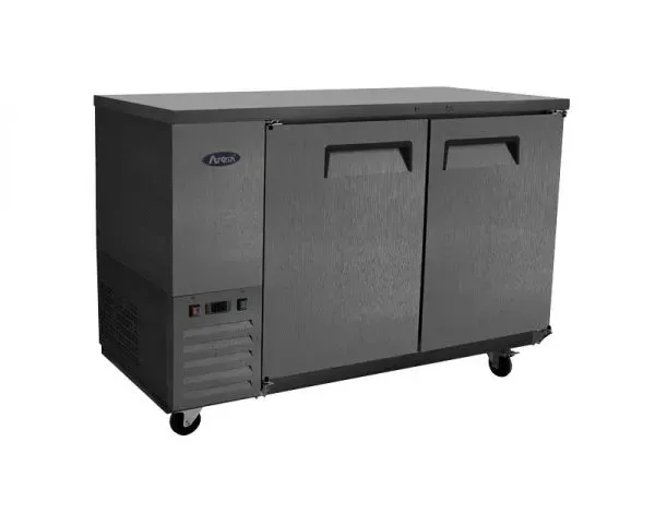 Discover kitchen perfection with the Atosa USA, SBB59GRAUS2 Shallow Depth Back Bar Coolers. Designed by Atosa USA, a trusted vendor in the industry, this back bar cooler is a must-have for any commercial restaurant. With its shallow depth and two-section design, it offers ample storage space without taking up too much floor space. The 15.0 cu. ft. capacity and four epoxy coated shelves provide plenty of room for storing beverages, ingredients, and more. The stainless steel top and interior ensure durability and easy cleaning, while the black exterior adds a sleek and modern touch to any establishment. The self-contained side mount refrigeration and digital temperature control guarantee optimal cooling performance. Equipped with locking solid doors, this cooler offers added security for your valuable items. With its compact size and convenient 2" casters, this back bar cooler is easy to move and position wherever you need it. Trust Atosa USA to deliver high-quality and reliable equipment for your commercial kitchen needs.