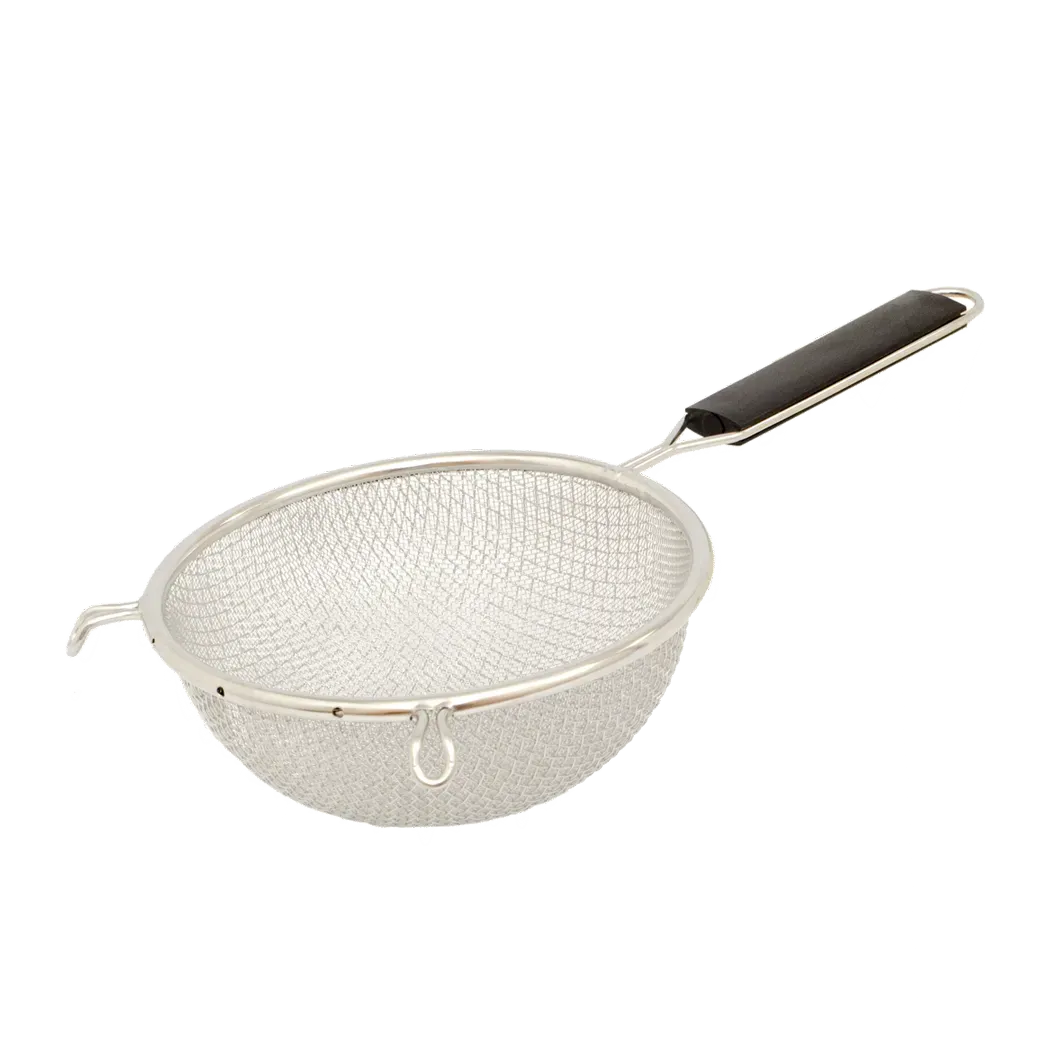 Bring efficiency to kitchen tasks with Browne Foodservice's 18098 Double Mesh Strainer Fine. Designed specifically for commercial restaurant use, this kitchen utensil is a must-have for any professional chef. The double mesh construction ensures that even the finest particles are strained out, resulting in smooth and perfectly textured sauces, soups, and stocks. With a diameter of 8 inches (20.3cm), this strainer is large enough to handle large quantities of ingredients, making it ideal for busy kitchens. Whether you're a seasoned chef or a culinary enthusiast, the Browne Foodservice 18098 Double Mesh Strainer Fine is a reliable and efficient tool that will elevate your cooking to the next level.