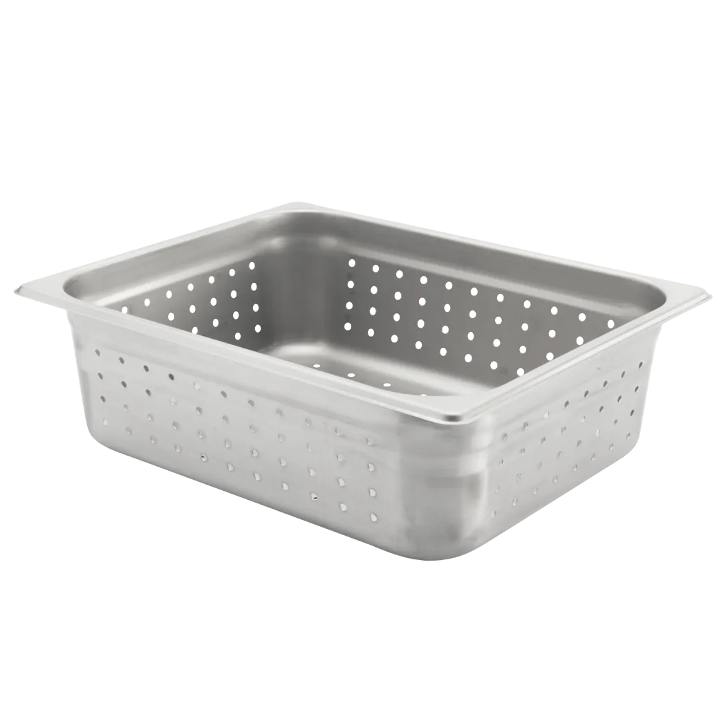 Stay at the forefront with top-tier tools like the Browne Foodservice, 21214, Steam Pans & Inserts - Steam Pans 22g. Designed for commercial restaurant use, this steam pan is a must-have for any professional kitchen. With its 22g stainless steel construction, it offers exceptional durability and longevity, ensuring it can withstand the demands of a busy restaurant environment. The 1/2-size perforated design allows for efficient draining, making it perfect for steaming vegetables, seafood, and more. Measuring 4" deep, it provides ample space for large quantities of food, allowing you to cater to your customers' needs with ease. NSF certified, this steam pan meets the highest standards of sanitation and hygiene. Whether you're running a bustling buffet or a high-volume catering service, the Browne Foodservice, 21214, Steam Pans & Inserts - Steam Pans 22g is the ideal choice for reliable and efficient food preparation.