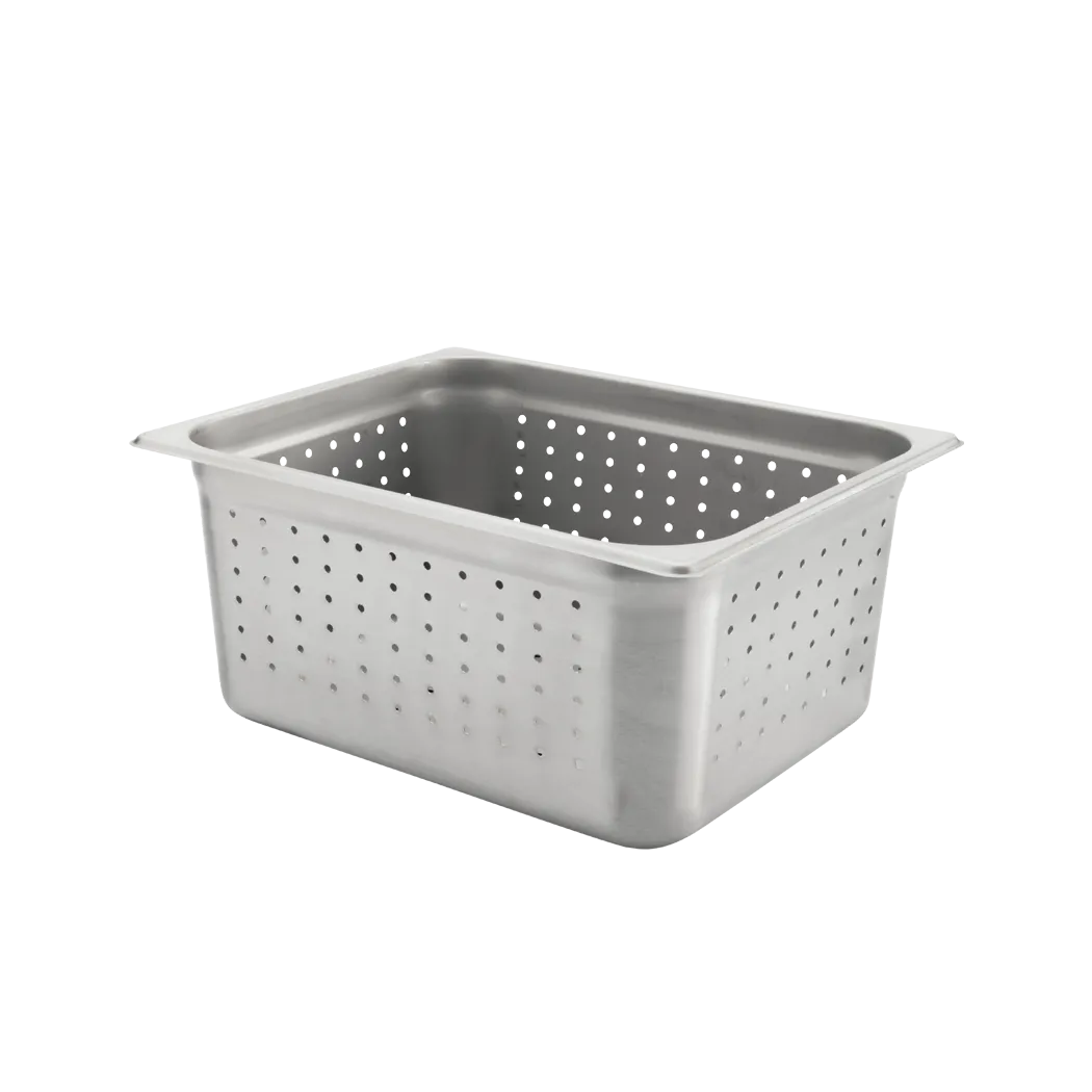 Stay competitive with kitchen innovations with Browne Foodservice's 21216 Steam Pans & Inserts - Steam Pans 22g. Designed for commercial restaurant use, this high-quality steam table pan is a must-have for any professional kitchen. Made from durable 22-gauge stainless steel, it can withstand the demands of a busy restaurant environment. The 6" deep, 1/2-size perforated pan allows for efficient drainage, ensuring that your food stays fresh and delicious. With its NSF certification, you can trust that this steam pan meets the highest standards of sanitation and safety. Whether you're steaming vegetables, cooking pasta, or keeping food warm, this Browne Foodservice steam pan is the perfect tool for the job. Don't settle for anything less than the best choose Browne Foodservice for all your kitchen needs.