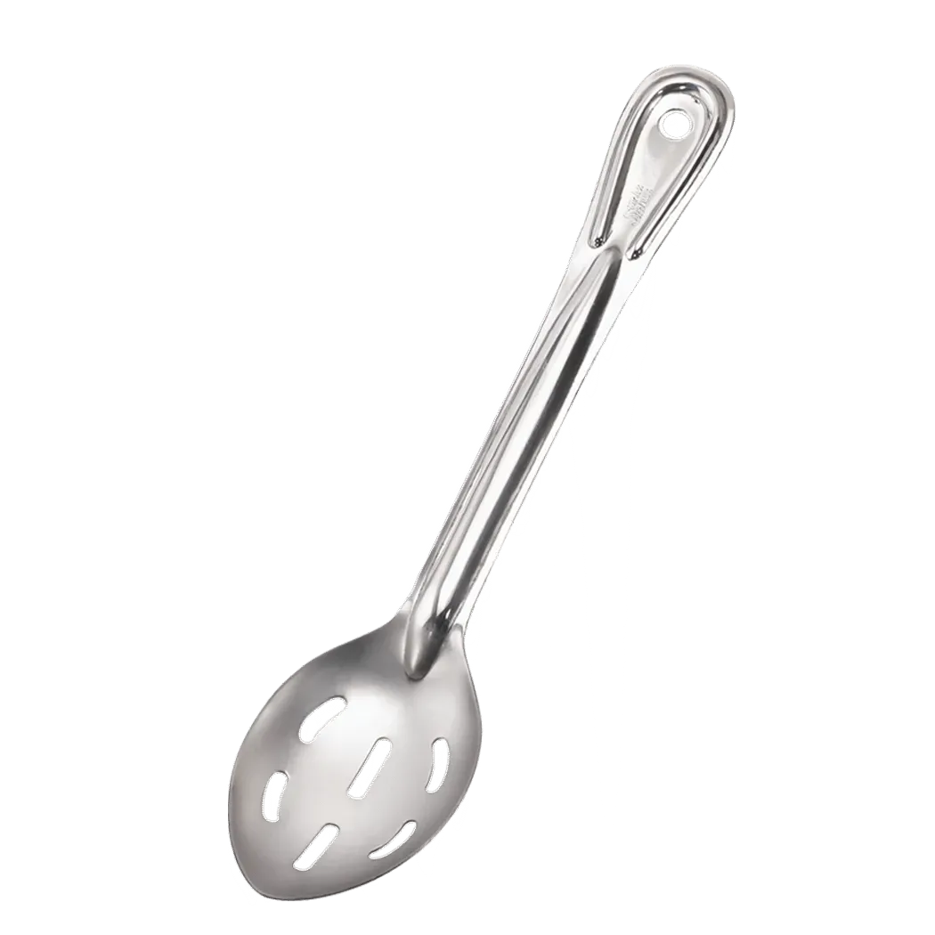 Create a seamless kitchen experience with Browne Foodservice's 2774 Kitchen Utensils - Basting Spoons. Designed for commercial restaurant use, this heavy-gauge, 15" stainless steel slotted spoon is a must-have tool for any professional chef. Its durable construction ensures long-lasting performance, even in high-volume kitchens. The slotted design allows for easy draining and serving of foods, making it perfect for basting meats, skimming soups, and serving vegetables. Whether you're a seasoned chef or a culinary enthusiast, this basting spoon will elevate your cooking experience. Its ergonomic handle provides a comfortable grip, while the stainless steel material is easy to clean and maintain. Enhance your kitchen efficiency and elevate your culinary creations with Browne Foodservice's 2774 Kitchen Utensils - Basting Spoons.