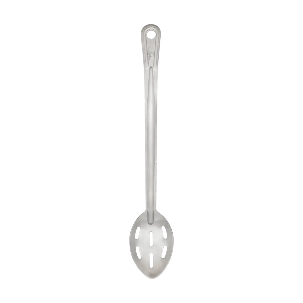 Enhance your restaurant's offerings with the Browne Foodservice 4767 Kitchen Utensils - Basting Spoons. Designed to meet the demands of a commercial kitchen, this Renaissance Spoon is a must-have tool for any chef. With its curved slotted stainless steel construction, this spoon allows for easy draining and serving of sauces, gravies, and other liquids. The 13-inch length provides ample reach, making it ideal for use in large pots and pans. Whether you're basting a roast or skimming the surface of a soup, this spoon is up to the task. Elevate your culinary creations with this state-of-the-art tool and experience the difference it makes in your kitchen. Don't settle for anything less than the best choose Browne Foodservice for all your kitchen utensil needs.