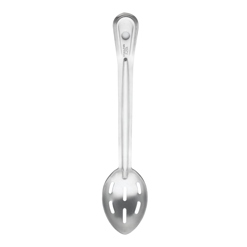 Experience the difference with innovative solutions in the kitchen with Browne Foodservice's 4774 Renaissance Spoon. This slotted stainless steel spoon is designed to meet the demands of a commercial restaurant setting. With a length of 15 inches (38.1cm), it provides the perfect reach for basting, stirring, and serving. The slotted design allows for easy draining of liquids, making it ideal for sautéing vegetables or serving pasta. The high-quality stainless steel construction ensures durability and longevity, even with frequent use in a busy kitchen. The Browne Foodservice 4774 Renaissance Spoon is packed individually by Browne Foodservice, ensuring that each spoon meets the highest standards of quality. Whether you're a professional chef or a home cook looking for restaurant-quality utensils, this spoon is a must-have addition to your kitchen arsenal. Elevate your culinary creations with Browne Foodservice's 4774 Renaissance Spoon.