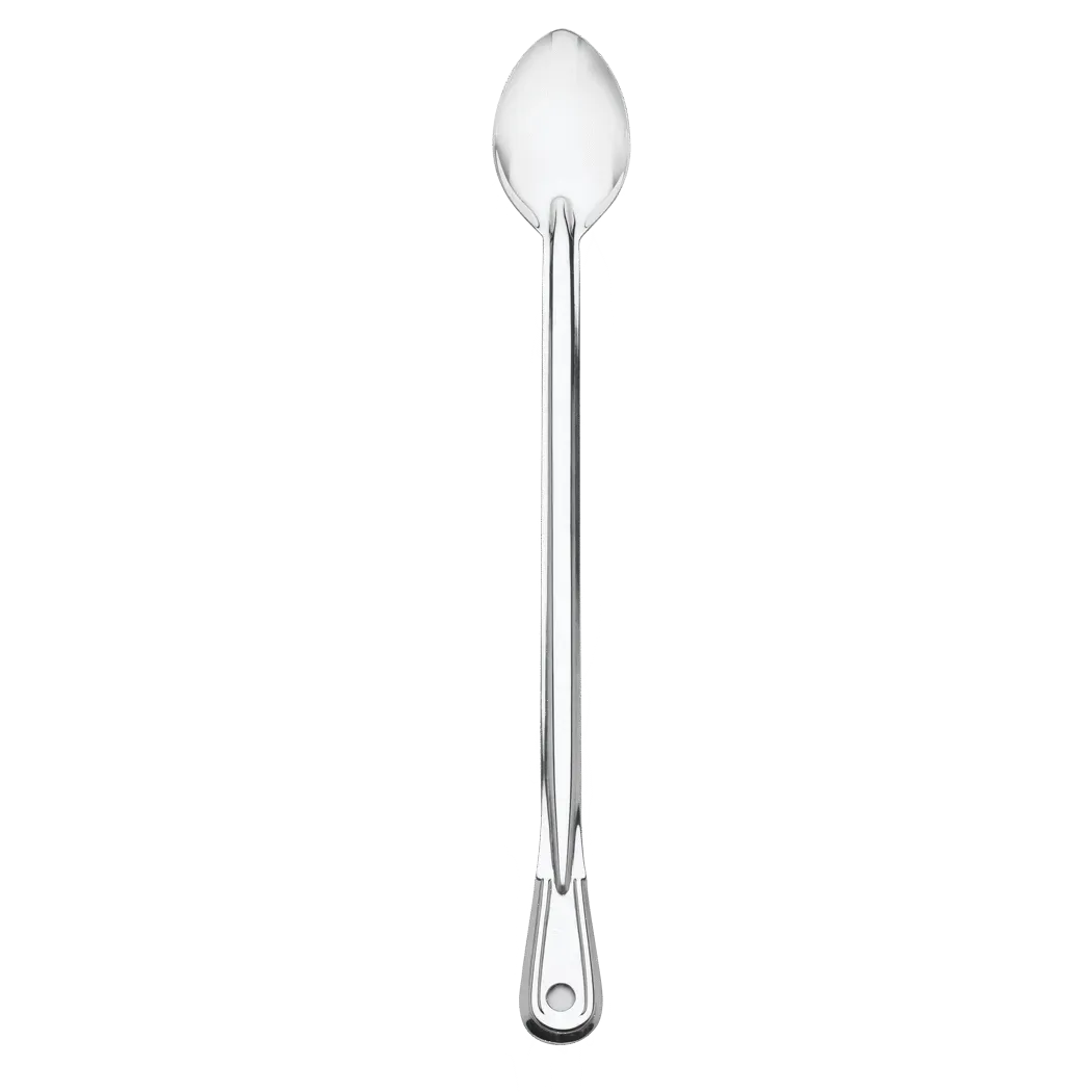 Elevate your restaurant offerings with the Browne Foodservice 4781 Kitchen Utensils - Basting Spoons. Designed for commercial restaurant use, this solid spoon is a must-have tool in any professional kitchen. With its extra-long handle measuring 21 inches, it provides the perfect reach for stirring, basting, and serving. The stainless steel construction ensures durability and longevity, making it ideal for heavy-duty use. Whether you're sautéing vegetables, stirring soups, or basting meats, this spoon is up to the task. With its sleek design and functional features, this basting spoon is a versatile addition to your kitchen utensils. Don't settle for anything less than the best when it comes to your restaurant's tools. Elevate your culinary creations with the Browne Foodservice 4781 Kitchen Utensils - Basting Spoons.