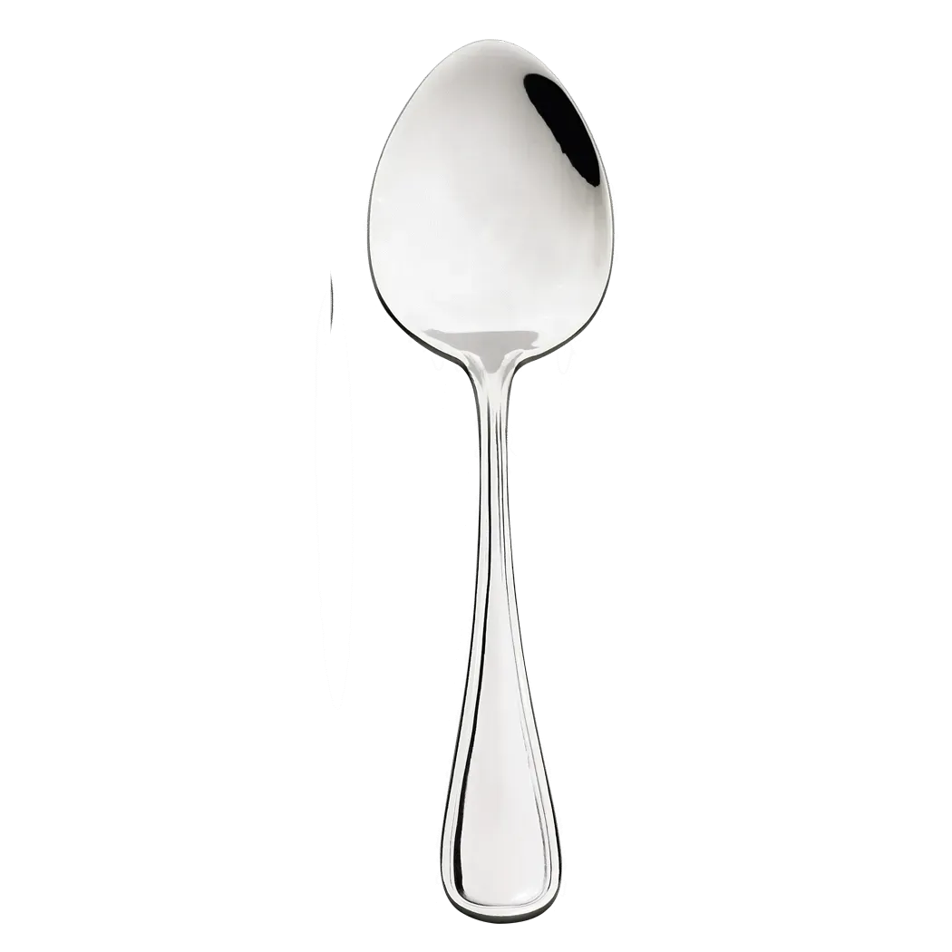 Optimize efficiency with quality tools. Introducing the Browne Foodservice, 502502, Flatware 18/0 - CELINE Flatware. This sleek and durable dessert spoon is a must-have for any commercial restaurant. Made from 18/0 stainless steel, it is designed to withstand the rigors of a busy kitchen while maintaining its elegant appearance. With a length of 7.3 inches, it is the perfect size for serving delectable desserts to your customers. Whether you're serving up mouthwatering cakes or creamy puddings, this dessert spoon will elevate your presentation and impress your guests. Upgrade your flatware collection with the Browne Foodservice CELINE Dessert Spoon and experience the difference in quality and performance.