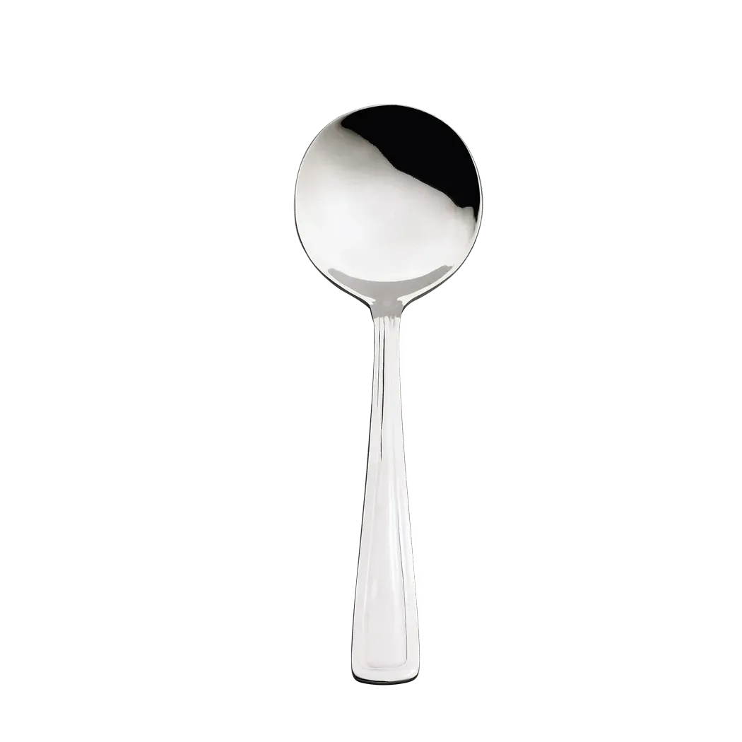 Introducing the Browne Foodservice, 502617, Flatware 18/0 - ROYAL Flatware, designed to modernize your restaurant's performance. Crafted by Browne Foodservice, this bouillon spoon is made of 18/0 stainless steel, ensuring durability and longevity in a commercial restaurant setting. With a length of 5.8 inches (14.5cm), it is the perfect size for serving soups, stews, and broths. The sleek design and polished finish add a touch of elegance to your table settings, impressing your customers and enhancing their dining experience. Whether you're running a fine dining establishment or a casual eatery, the Browne Foodservice, 502617, Flatware 18/0 - ROYAL Flatware is a must-have addition to your restaurant's flatware collection. Upgrade your restaurant's style and functionality with this exceptional bouillon spoon.