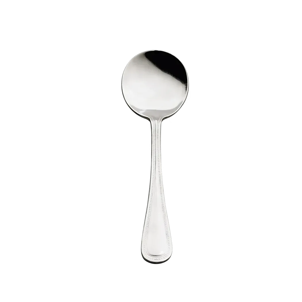 Seamless food prep with versatile products. Introducing the Browne Foodservice, 502917, Flatware 18/0 - CONTOUR Flatware. Crafted with precision and designed for commercial restaurant use, this bouillon spoon is a must-have for any professional kitchen. Made from high-quality 18/0 stainless steel, it offers exceptional durability and resistance to corrosion, ensuring long-lasting performance even in the busiest of settings. The 6.3-inch length provides the perfect balance of comfort and control, making it ideal for stirring soups, sauces, and more. With its sleek and modern design, this spoon adds a touch of elegance to any table setting. Upgrade your restaurant's flatware collection with the Browne Foodservice, 502917, Flatware 18/0 - CONTOUR Flatware and experience the difference in quality and functionality.