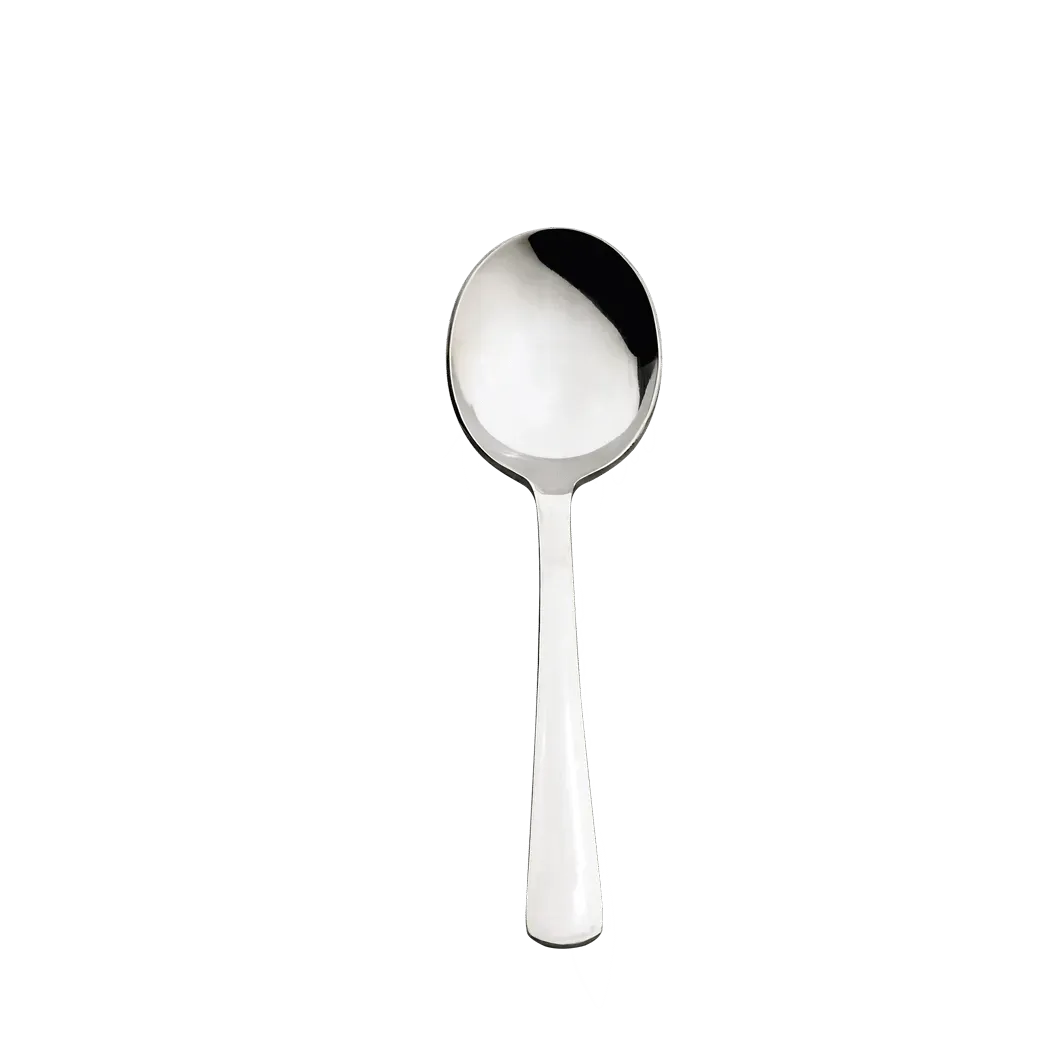 Elevate dining with innovative essentials with Browne Foodservice's 503817 Flatware 18/0 - WIN2 Flatware. This high-quality bouillon spoon is a must-have for any commercial restaurant. Crafted from durable 18/0 stainless steel, it is designed to withstand the rigors of a busy kitchen while maintaining its sleek appearance. Measuring 6 inches in length, this spoon is the perfect size for enjoying soups, stews, and broths. Its ergonomic handle ensures a comfortable grip, allowing for effortless serving and stirring. Whether you're running a bustling diner or an upscale bistro, Browne Foodservice's 503817 Flatware 18/0 - WIN2 Flatware is the ideal choice for enhancing your dining experience.