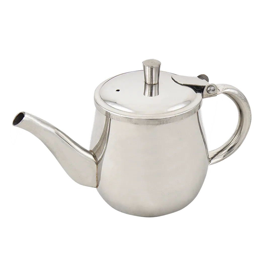 Boost functionality with quality tools like the Browne Foodservice 515200 Gooseneck Teapot. Designed for commercial restaurant use, this stainless steel teapot is a must-have for any beverage service. With a capacity of 10 ounces, it is perfect for serving individual cups of tea or coffee. The gooseneck spout allows for precise pouring, ensuring a steady and controlled flow without any spills. The durable construction of this teapot ensures long-lasting performance, even in a busy restaurant environment. Its sleek and professional design adds a touch of elegance to any table setting. Whether you're serving hot water for tea or pouring coffee, this gooseneck teapot from Browne Foodservice is a reliable and stylish choice. Enhance your beverage service and impress your customers with this high-quality teapot.