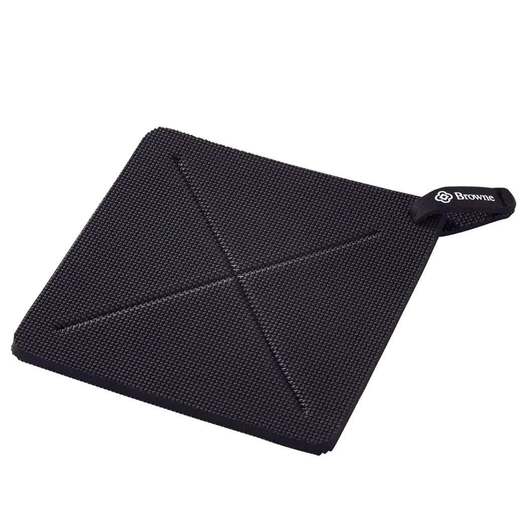 Set the standard with top-tier tools with Browne Foodservice, 5442102, Safety - KITCHEN GRIPS. This ULTRA THICK Hot Pad is a must-have for any commercial restaurant. Made with FLXaPrene material, it provides superior heat resistance and flexibility, ensuring the safety of your staff and customers. Measuring 10x10 inches, this black hot pad is the perfect size for handling hot pots, pans, and dishes in a busy kitchen. Its thick construction offers excellent insulation, protecting your hands from burns and providing a secure grip on hot surfaces. Designed by Browne Foodservice, a trusted name in the industry, this hot pad is built to withstand the demands of a commercial kitchen. Whether you're a chef, line cook, or server, this Safety - KITCHEN GRIPS hot pad is an essential tool that will enhance safety and efficiency in your restaurant.