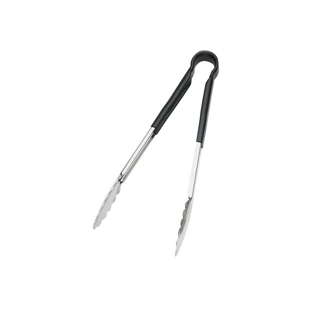 Set standards with a variety of equipment with Browne Foodservice's 5511BK Kitchen Utensils - Tongs. Designed for commercial restaurant use, these 9" tongs with a black coated handle offer both style and functionality. The black coating not only adds a sleek touch to your kitchen, but it also provides a secure grip, ensuring precise control when handling food. Made with durable materials, these tongs are built to withstand the demands of a busy kitchen, making them a reliable choice for any commercial restaurant. Whether you're flipping steaks on the grill or plating delicate pastries, these tongs will help you maintain the highest standards in your kitchen. Elevate your culinary experience with Browne Foodservice's 5511BK Kitchen Utensils - Tongs.