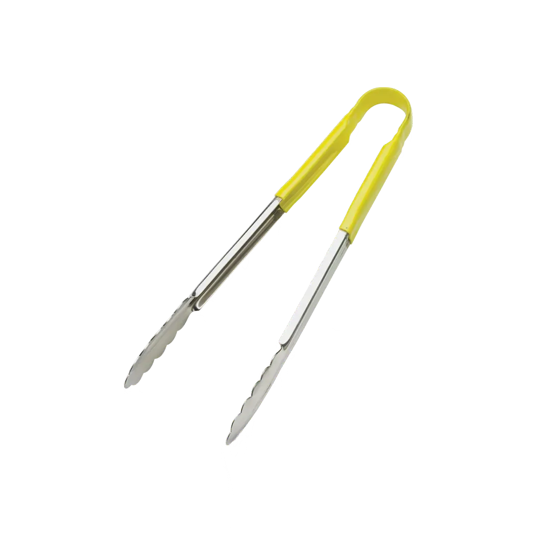 Stay at the forefront with top-tier tools like the Browne Foodservice, 5511YL Kitchen Utensils - Tongs. Designed for commercial restaurant use, these tongs are a must-have for any professional kitchen. With a 9" length and a yellow coated handle, these tongs provide a secure grip and excellent control when handling food. The durable construction ensures long-lasting performance, even in high-volume settings. Whether you're flipping steaks on the grill or plating delicate pastries, these tongs are up to the task. Elevate your culinary experience with these reliable and versatile tongs. Order yours today and experience the difference they can make in your kitchen.