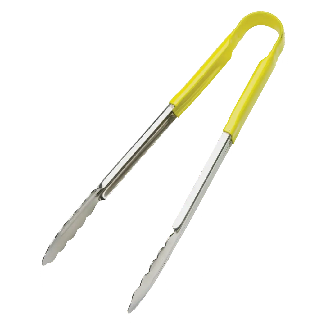 Optimize workflow with high-quality equipment using Browne Foodservice, 5513YL, Kitchen Utensils - Tongs. These 16" tongs with a yellow coated handle are a must-have for any commercial restaurant. Designed by Browne Foodservice, a trusted vendor in the industry, these tongs are built to withstand the demands of a busy kitchen. The yellow coated handle provides a comfortable grip, ensuring precise control when handling food. Whether you're flipping steaks on the grill or serving salads at the buffet, these tongs are the perfect tool for the job. Their durable construction and ergonomic design make them ideal for heavy-duty use in a commercial restaurant setting. Upgrade your kitchen with Browne Foodservice, 5513YL, Kitchen Utensils - Tongs and experience the difference in efficiency and performance.