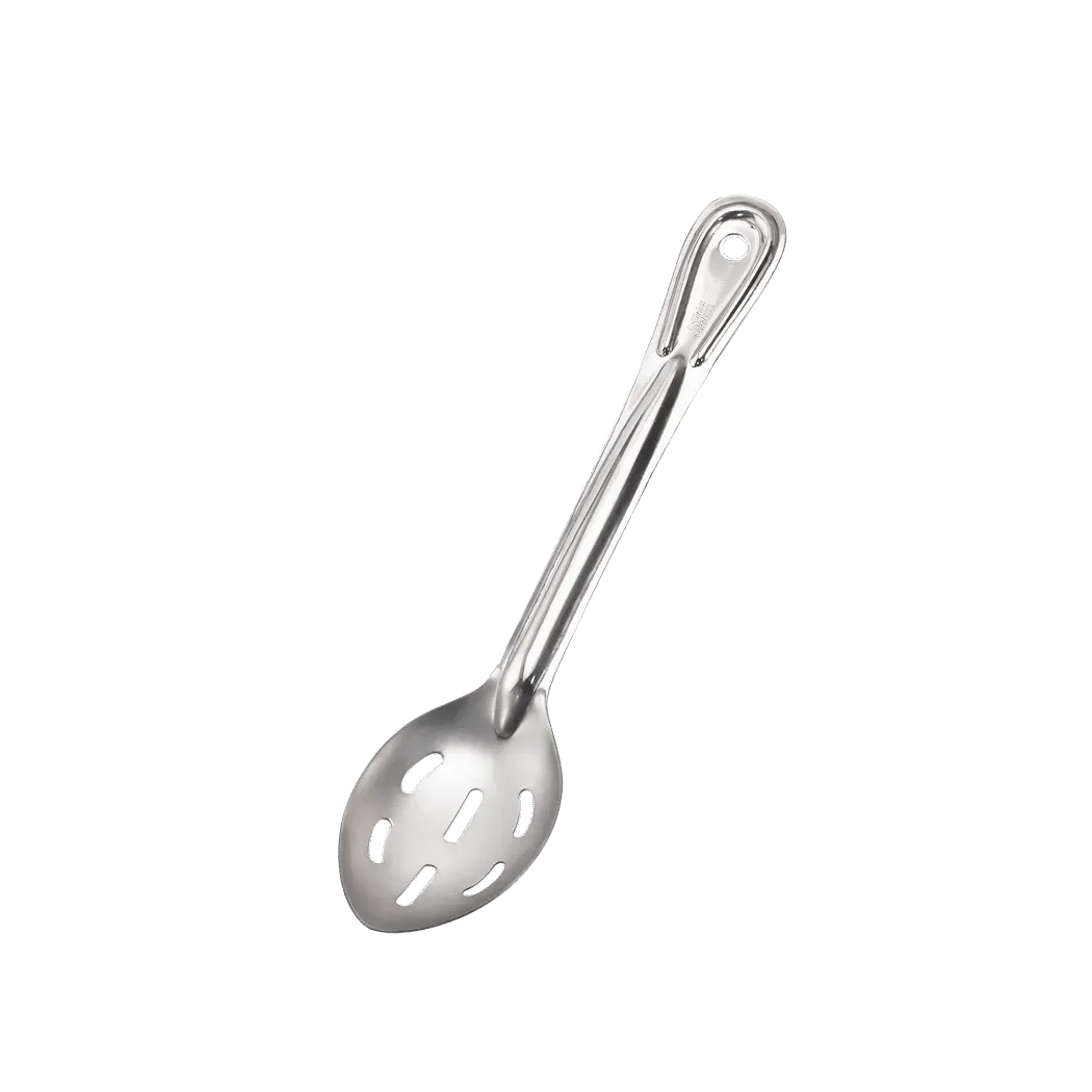Introducing the Browne Foodservice 572113 Kitchen Utensils - Basting Spoons, designed to modernize your restaurant's performance. Crafted by Browne Foodservice, a trusted vendor in the industry, this medium gauge slotted spoon is a must-have for any commercial kitchen. With its 11" stainless steel construction, this spoon offers durability and longevity, ensuring it can withstand the demands of a busy restaurant environment. The slotted design allows for easy draining, making it perfect for basting, serving, and straining. Whether you're sautéing vegetables, flipping delicate fish, or serving up a delicious pasta dish, this basting spoon is the ideal tool for the job. Upgrade your kitchen utensils with the Browne Foodservice 572113 Kitchen Utensils - Basting Spoons and experience enhanced performance in your commercial restaurant.