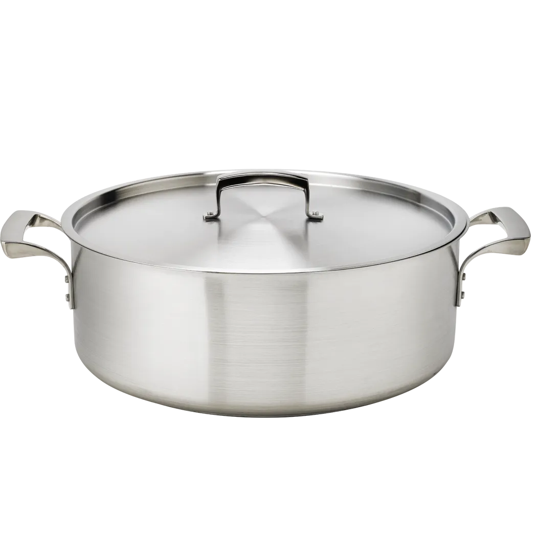 Set standards with a variety of equipment with Browne Foodservice's Cookware - THERMALLOY Stainless. Model number 5724029 is a 30qt stainless steel brazier that is NSF certified, ensuring its durability and safety for commercial restaurant use. This brazier is designed to withstand the demands of a busy kitchen, making it perfect for braising, stewing, and simmering large quantities of food. With its thermal conductivity, this cookware ensures even heat distribution, preventing hot spots and allowing for precise cooking. The 30qt capacity provides ample space for cooking large batches, making it ideal for restaurants that cater to a high volume of customers. Elevate your culinary creations with this reliable and efficient brazier.
