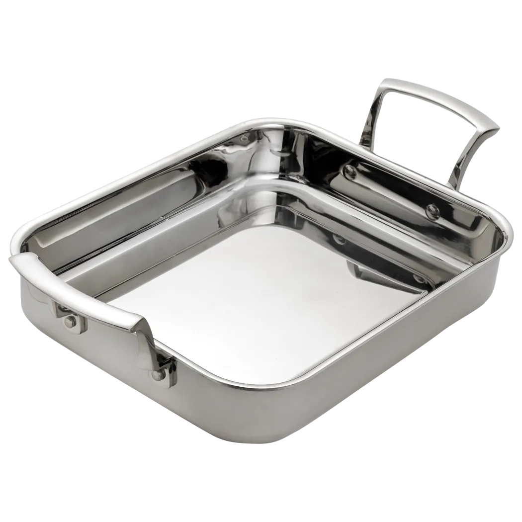 Equip for success with essential tools like the Browne Foodservice, 5724176, Cookware - THERMALLOY Stainless. This high-quality roast pan is a must-have for any commercial restaurant. With a capacity of 4.6 quarts (4.4 liters) and dimensions of 14x11.4x2 inches (36x29x5 cm), it provides ample space for roasting meats and vegetables to perfection. The THERMALLOY stainless steel construction ensures even heat distribution, preventing hot spots and ensuring consistent cooking results. Designed by Browne Foodservice, a trusted name in the industry, this pan is built to withstand the demands of a busy kitchen. Its durable construction and easy-to-clean surface make it ideal for frequent use. Whether you're roasting a succulent prime rib or creating a delicious vegetable medley, this Browne Foodservice roast pan is the perfect tool to elevate your culinary creations. Invest in quality and efficiency with the Browne Foodservice, 5724176, Cookware - THERMALLOY Stainless.