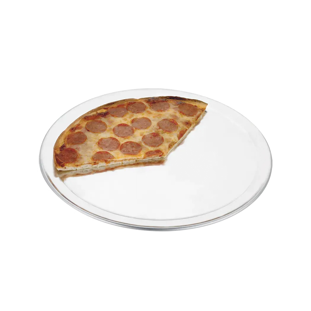 Bring efficiency to kitchen tasks with Browne Foodservice's 5730032 Pizza - Bakeware. Designed for commercial restaurant use, this wide rim pizza pan is made of durable aluminum, ensuring long-lasting performance in high-volume settings. With a diameter of 12 inches (30.5cm), it provides ample space for baking delicious pizzas to perfection. The 20 gauge/0.8mm thickness of the pan ensures even heat distribution, resulting in evenly cooked crusts every time. Its wide rim design allows for easy handling and transport, making it ideal for busy kitchens. Whether you're running a pizzeria or a restaurant with a pizza menu, this Browne Foodservice pizza pan is a must-have tool for creating mouthwatering pizzas that will keep your customers coming back for more.