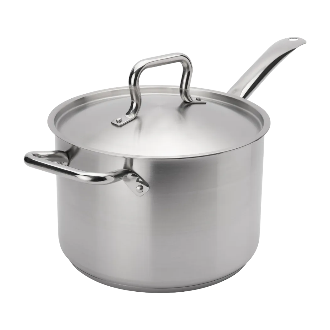 Stay ahead with competitive tools with Browne Foodservice's Cookware - ELEMENTS Cookware. Model number 5734037 is a versatile sauce pan designed specifically for commercial restaurant use. With a generous capacity of 7.6qt/7.2L, this stainless steel sauce pan is perfect for preparing large quantities of sauces, soups, and stews. The included cover helps to retain heat and flavors, ensuring that your dishes are cooked to perfection. This sauce pan is NSF certified, guaranteeing its quality and safety for use in a professional kitchen. Browne Foodservice, a trusted name in the industry, offers this cookware as part of their ELEMENTS Cookware collection. With its durable construction and superior heat distribution, this sauce pan is a valuable addition to any commercial kitchen. Upgrade your cooking equipment with Browne Foodservice's Cookware - ELEMENTS Cookware and elevate your culinary creations.