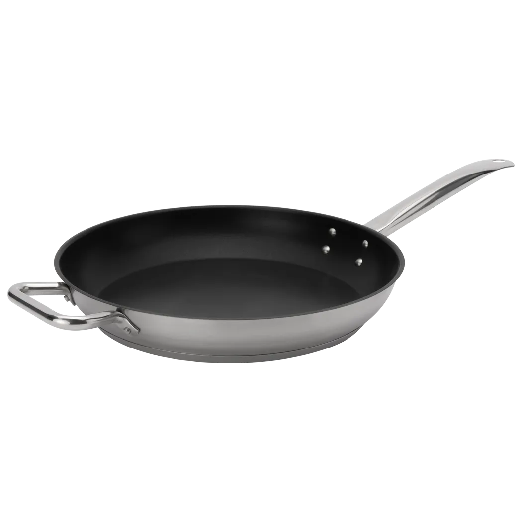 Elevate the experience with essentials. Introducing the Browne Foodservice 5734064 Cookware - ELEMENTS Cookware. Designed specifically for commercial restaurant use, this fry pan is a must-have in any professional kitchen. With a generous size of 14"/36cm, it provides ample space for cooking large quantities of food. The stainless steel construction ensures durability and longevity, making it perfect for high-volume cooking. The non-stick Excalibur coating prevents food from sticking, allowing for easy flipping and serving. NSF certified, this fry pan meets the highest standards of safety and sanitation. Whether you're sautéing vegetables, searing meats, or frying eggs, this fry pan delivers exceptional performance and reliability. Upgrade your kitchen with this essential cookware and take your culinary creations to the next level.