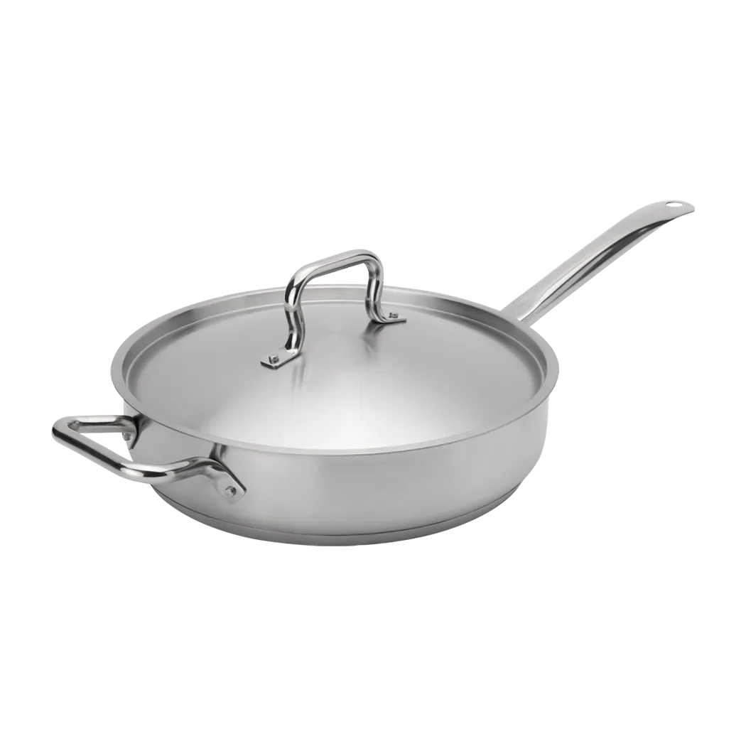 Optimize workflow with high-quality equipment using Browne Foodservice's 5734185 Cookware - ELEMENTS Cookware. This sauté pan is a must-have for any commercial restaurant looking to enhance their cooking capabilities. With a generous 5qt/4.75L capacity and a durable stainless steel construction, this pan is designed to withstand the demands of a busy kitchen. The included cover helps to lock in heat and flavors, allowing for efficient cooking and delicious results. The NSF certification ensures that this pan meets the highest standards of safety and sanitation, making it suitable for professional use. Whether you're sautéing vegetables, searing meats, or simmering sauces, this pan delivers exceptional heat distribution and retention for consistent and precise cooking. Upgrade your kitchen with Browne Foodservice's 5734185 Cookware - ELEMENTS Cookware and experience the difference in performance and durability.
