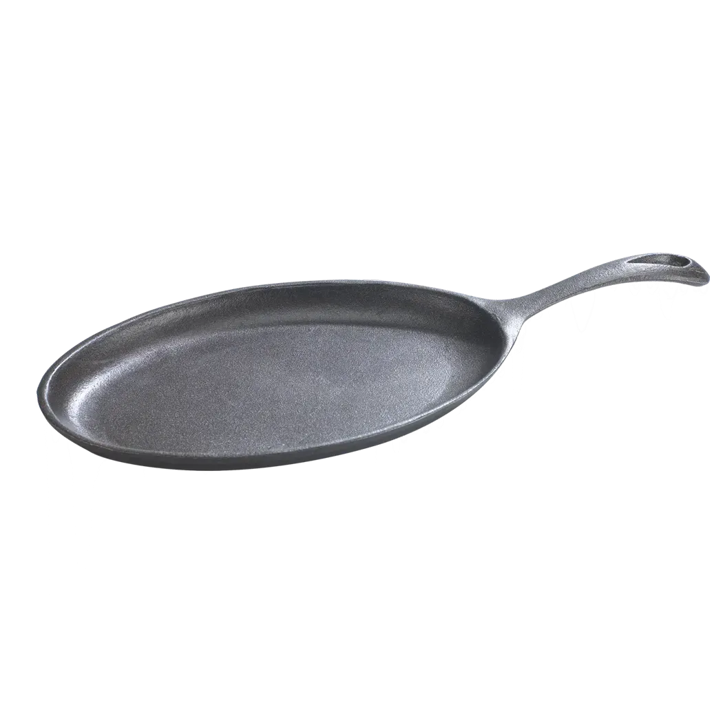 Seamless food prep with versatile products. Introducing the Browne Foodservice, 573722, Cookware - Cast Iron. This high-quality cast iron oval fry pan is a must-have for any commercial restaurant. With its durable construction and superior heat retention, this fry pan ensures even cooking and consistent results every time. The cast iron material provides excellent heat distribution, making it perfect for searing, frying, and sautéing. Its oval shape offers ample cooking space, allowing you to prepare large quantities of food at once. The Browne Foodservice cast iron fry pan is designed to withstand heavy use in a busy kitchen, making it ideal for commercial restaurant settings. Whether you're cooking up a delicious stir-fry or searing a mouthwatering steak, this cast iron fry pan will deliver exceptional performance and help you create culinary masterpieces. Upgrade your kitchen with the Browne Foodservice cast iron oval fry pan and experience the difference in your cooking.