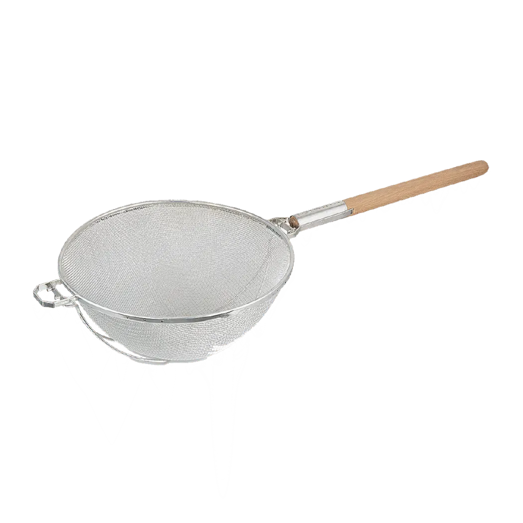 Maximize productivity in the kitchen with Browne Foodservice's 574133 Kitchen Utensils - Strainers. This heavy-duty double-mesh strainer, with its 12" bowl, is designed to meet the demands of a commercial restaurant setting. Its durable construction and double-mesh design make it perfect for straining sauces, soups, and other liquids, removing any unwanted particles with ease.