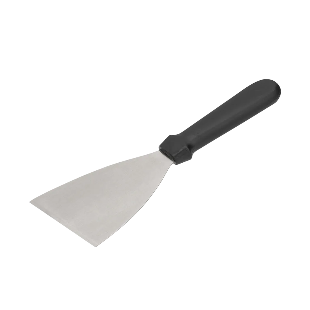 Introducing the Browne Foodservice 5744313 Bakeware - Utensils, a must-have tool for commercial restaurants. This stiff scraper with a black handle is designed to ensure consistency with diverse culinary creations. With its compact size of 4.5x4", this scraper is perfect for scraping, spreading, and smoothing various ingredients. Made with durable materials, this scraper is built to withstand the demands of a busy commercial kitchen. Its ergonomic handle provides a comfortable grip, allowing for precise control and effortless maneuverability. Whether you're working with dough, batter, or sauces, this scraper will help you achieve the perfect consistency every time. Enhance your culinary creations and streamline your kitchen operations with the Browne Foodservice 5744313 Bakeware - Utensils.