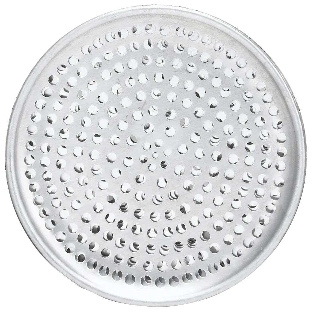 Invest in success with the best tools for your commercial restaurant. Introducing the Browne Foodservice 575359 Pizza Tray Aluminum. This perforated 19"/48cm pizza tray is a must-have for any pizzeria or restaurant. Designed by Browne Foodservice, a trusted name in the industry, this pizza tray is built to withstand the demands of a busy kitchen. The perforated design allows for even heat distribution, resulting in a perfectly crispy crust every time. Its durable aluminum construction ensures long-lasting performance, making it a reliable choice for commercial use. Whether you're baking traditional pizzas or experimenting with unique toppings, the Browne Foodservice 575359 Pizza Tray Aluminum is the perfect tool to elevate your pizza game and impress your customers.