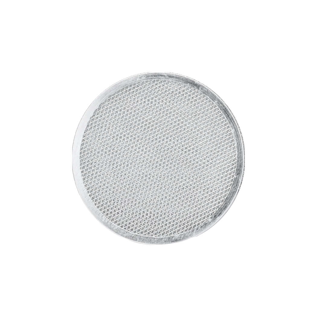 Craft dishes with top-notch instruments using Browne Foodservice's Pizza - Bakeware, Pizza. This high-quality pizza screen, model number 575360, is a must-have for any commercial restaurant. Made of durable aluminum, it ensures even heat distribution, resulting in perfectly crispy crusts every time. With a 10" diameter, it's ideal for making personal-sized pizzas or reheating slices. The screen's fine mesh allows for excellent airflow, preventing sogginess and promoting thorough baking. Its lightweight design makes it easy to handle and clean, saving valuable time in a busy kitchen. Whether you're a pizzeria, a food truck, or a restaurant, this pizza screen will elevate your pizza-making game and impress your customers. Invest in Browne Foodservice's Pizza - Bakeware, Pizza for professional results that will keep your customers coming back for more.