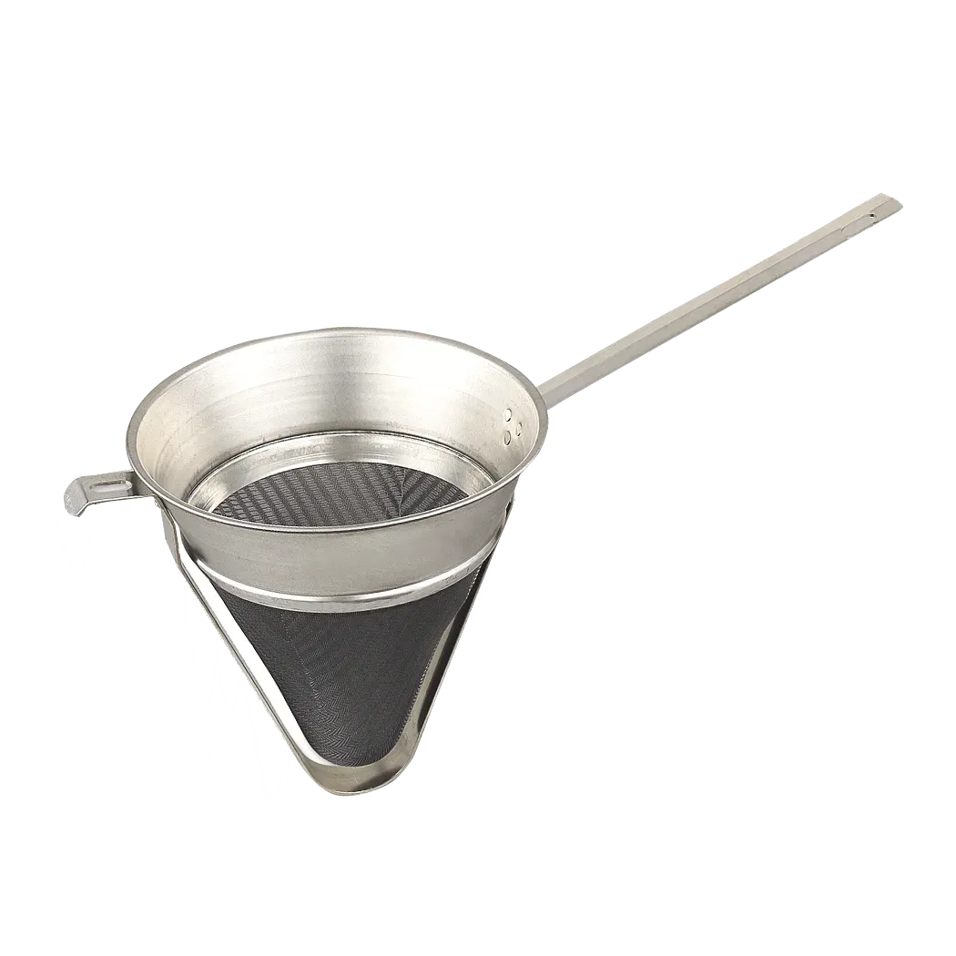 Craft dishes with top-notch instruments using the Browne Foodservice 575515 Kitchen Utensils - Strainers. This high-quality strainer is a must-have for any commercial restaurant. With its durable construction and efficient design, it allows you to strain soups, stocks, and sauces with ease. The 20P bouillon strainer comes with a convenient pan hook, making it easy to strain directly into pots or containers. Its compact size and lightweight design ensure easy handling and storage. Whether you're a professional chef or a home cook looking to elevate your culinary creations, this strainer is the perfect tool for the job. Invest in the Browne Foodservice 575515 and experience the difference it makes in your kitchen.