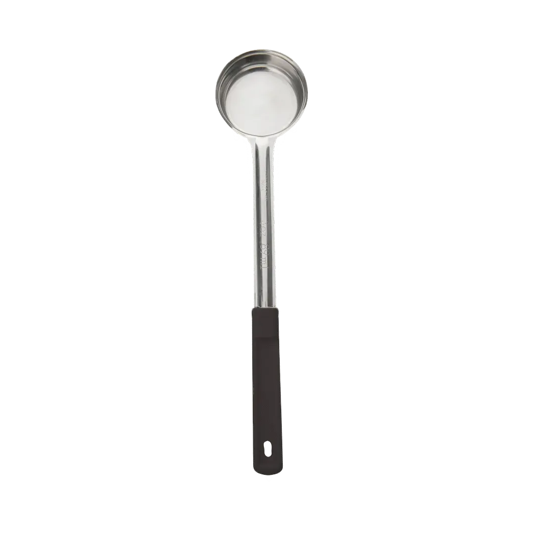 Bring efficiency to kitchen tasks with Browne Foodservice's 5757231 Kitchen Utensils - Ladles & Portioners. This versatile tool is a must-have for any commercial restaurant. With its 3oz 1-Piece Portioner Perforated w/Black Handle, it allows for precise portioning and serving of soups, sauces, and other dishes. The perforated design ensures that excess liquid drains away, leaving behind perfectly portioned servings. The black handle provides a comfortable grip, reducing fatigue during long hours of use. Made by Browne Foodservice, a trusted name in kitchen utensils, this ladle and portioner is built to withstand the demands of a busy restaurant kitchen. Whether you're serving up a hearty stew or a delicate sauce, this ladle and portioner will help you maintain consistency and efficiency in your food preparation. Upgrade your kitchen tools with Browne Foodservice's 5757231 Kitchen Utensils - Ladles & Portioners.