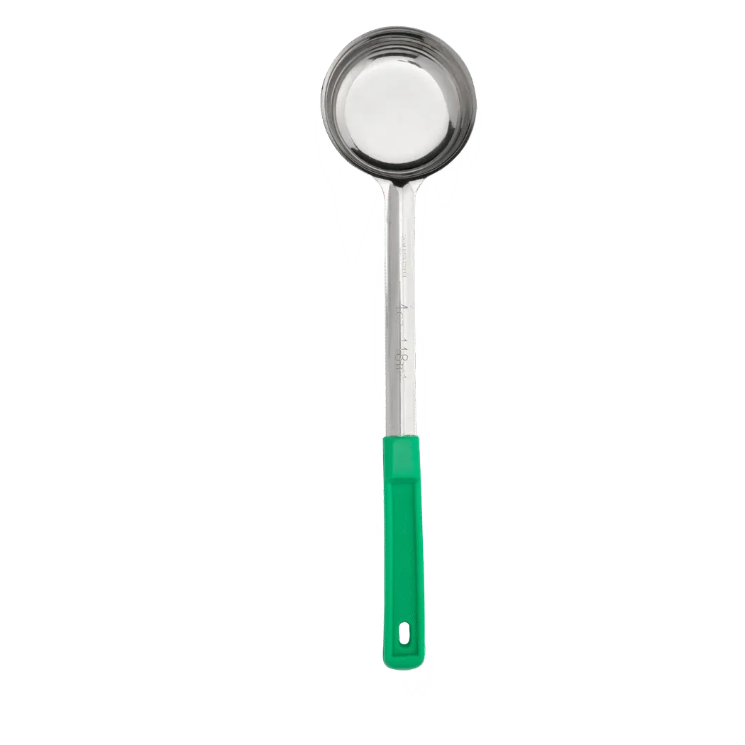 Optimize efficiency with quality tools in your commercial restaurant kitchen with Browne Foodservice's Kitchen Utensils - Ladles & Portioners. The 5757440 model is a must-have for any professional chef or cook. This 4oz 1-Piece Portioner with a green handle is designed to make portioning a breeze, ensuring consistent serving sizes and reducing waste. Its durable construction guarantees long-lasting performance, even in the busiest kitchen environments. The ergonomic handle provides a comfortable grip, allowing for precise control and minimizing fatigue during extended use. With Browne Foodservice's Kitchen Utensils - Ladles & Portioners, you can streamline your food preparation process, saving time and effort. Whether you're serving soups, stews, or sauces, this portioner is the perfect tool to ensure consistent and accurate portions every time. Invest in quality and efficiency with Browne Foodservice's Kitchen Utensils - Ladles & Portioners.