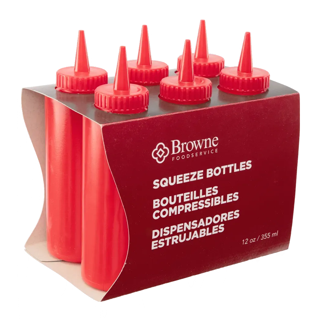 Upgrade your commercial restaurant with the Browne Foodservice 57801205 Tabletop Accessories - Squeeze Bottles. These high-quality squeeze bottles are a must-have for any professional kitchen. Made by Browne Foodservice, a trusted vendor in the industry, these bottles are designed to withstand the demands of a busy restaurant environment. The squeeze design allows for easy dispensing, ensuring precise portion control and reducing waste. These bottles are perfect for front-of-house use, allowing customers to add their favorite condiments to their meals. In the back-of-house, they are ideal for organizing and storing various sauces and dressings. Upgrade your restaurant's efficiency and presentation with the Browne Foodservice 57801205 Tabletop Accessories - Squeeze Bottles.