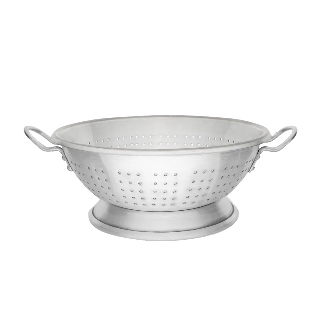 Stay ahead with competitive tools with Browne Foodservice's 5811611 Kitchen Utensils - Colanders. This heavy-duty aluminum footed colander is a must-have for any commercial restaurant. With a capacity of 11 quarts, it can handle large quantities of food, making it perfect for draining pasta, washing vegetables, and straining sauces. The colander is designed with durability in mind, ensuring it can withstand the demands of a busy kitchen. Its footed base provides stability during use, preventing it from tipping over and spilling contents. Whether you're a professional chef or a restaurant owner, this colander will streamline your food preparation process and help you deliver delicious meals to your customers. Invest in Browne Foodservice's 5811611 Kitchen Utensils - Colanders and elevate your restaurant's efficiency and productivity.