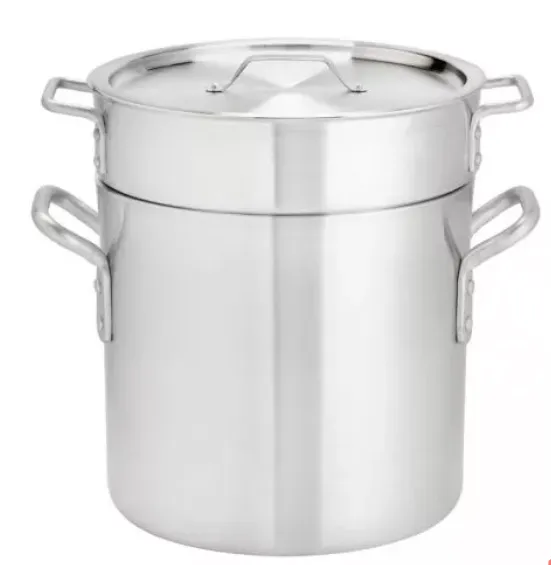 Elevate your culinary creations with the versatile and efficient THERMALLOY Double Boiler Set, expertly crafted for both professional chefs and home cooking enthusiasts. This robust 20-quart (18.9-liter) double boiler is designed to handle all your delicate cooking needs, from melting chocolate and preparing custards to crafting velvety sauces and simmering soups. Constructed from high-quality aluminum, this set ensures optimal heat distribution and retention, minimizing hotspots for consistent results. Measuring 12x9.8 inches (30.5x24.9 cm), this double boiler fits seamlessly into any kitchen setup, providing ample capacity without compromising on space. The NSF certification guarantees that it meets the highest standards for public health protection, making it a reliable choice for commercial kitchens. The THERMALLOY double boiler's durable, easy-to-clean surface ensures it withstands the rigors of daily use while maintaining its sleek, professional appearance. Its ergonomic design includes sturdy handles for safe, comfortable handling, and the snug-fitting lid locks in moisture and flavor, delivering exceptional culinary results every time. Whether you're a seasoned chef or just starting out, this double boiler set is an indispensable addition to your collection of pots and pans, offering unmatched performance and durability to inspire your cooking adventures.