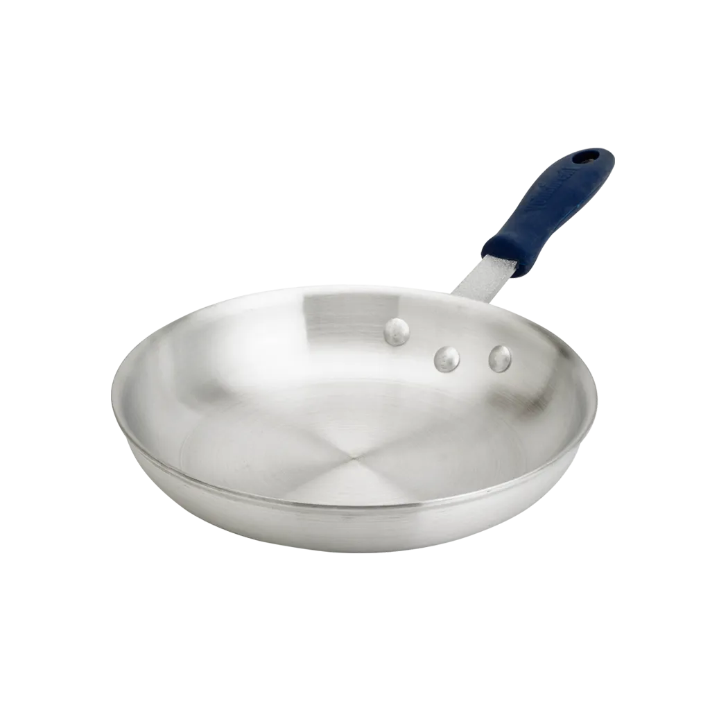 Bring efficiency to kitchen tasks with Browne Foodservice's 5813810 Cookware - THERMALLOY Aluminum. This 10" Aluminum Fry Pan is designed to enhance performance in commercial restaurant settings. The pan features a ThermoGrip Silicone Sleeve, providing a comfortable and secure grip, even when handling hot ingredients. Its NSF certification ensures the highest standards of safety and hygiene. The THERMALLOY Aluminum construction ensures quick and even heat distribution, allowing for precise cooking results. Its durable build and ergonomic design make it ideal for high-volume cooking, while its non-stick surface simplifies cleaning. Whether you're sautéing, frying, or searing, this Browne Foodservice fry pan is a reliable and efficient choice for any commercial kitchen.