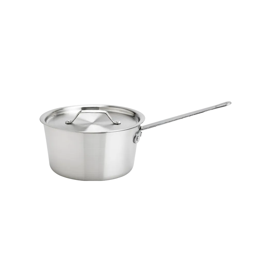 Boost functionality with quality tools with Browne Foodservice's 5813902 Cookware - THERMALLOY Aluminum. This 2.5 qt Aluminum Sauce Pan is designed to enhance your commercial restaurant's cooking experience. Crafted with precision, it features a tapered design that allows for easy pouring and reduces the risk of spills. The NSF certification ensures that this sauce pan meets the highest standards of safety and hygiene, making it perfect for professional kitchens. The durable aluminum construction ensures even heat distribution, allowing for consistent cooking results. With its generous capacity, this sauce pan is ideal for preparing sauces, soups, and gravies in large quantities. Its sturdy handle provides a secure grip, minimizing the risk of accidents. Browne Foodservice's 5813902 Cookware - THERMALLOY Aluminum is a reliable and efficient addition to any commercial kitchen, offering durability, functionality, and convenience. Upgrade your cooking equipment today and experience the difference.