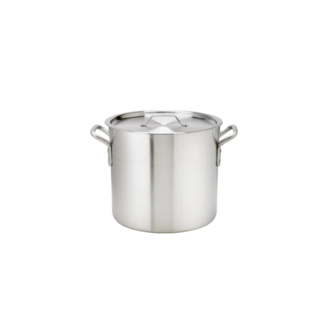 Craft wonders with professional-grade utensils with Browne Foodservice's 5814124 Cookware - THERMALLOY Aluminum. This 24qt HD Aluminum Stock Pot is a must-have for any commercial restaurant. Designed with durability in mind, it is NSF certified, ensuring it meets the highest standards of quality and safety. The heavy-duty aluminum construction provides even heat distribution, allowing for consistent cooking results. Its generous capacity allows for cooking large batches of soups, stews, and stocks, saving time and effort. Upgrade your kitchen with this professional-grade stock pot and experience the difference in performance and efficiency.